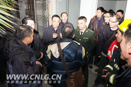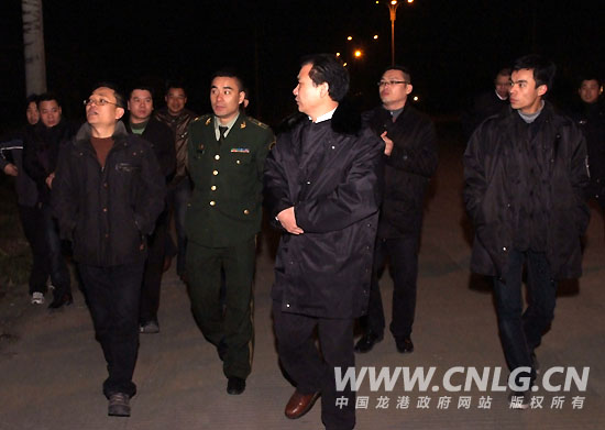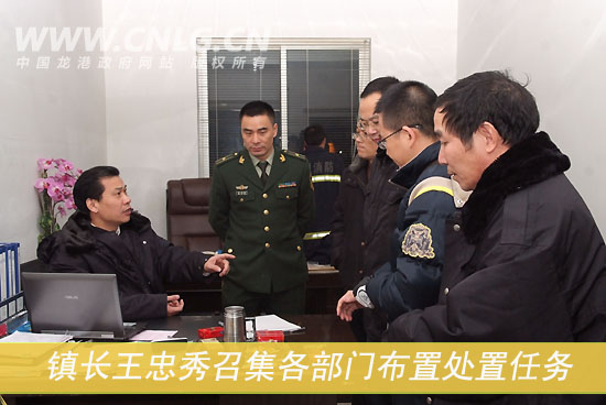 龙港镇长王忠秀带领各部门领导现场协调处置工作