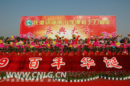 本网讯:12月23日上午,湖前小学建校一百周年校庆仪式在学校操场内隆重举行,县、镇领导苏庆明、杨成秋、汤宝林、黄锦耀、冯兴钱、王忠秀、缪克钊、吕存阳及校友代表、家长代表、全体师生参加了庆典活动。