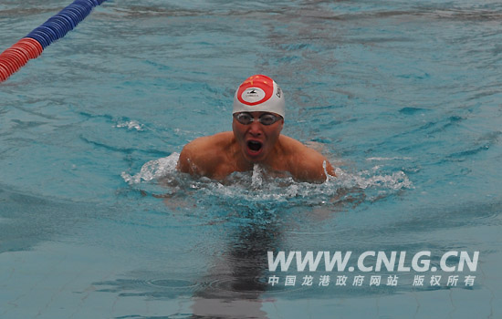 温州体育局副局长潘可夫,温州市体总专职副主席钱登瑞,中国游泳协会冬泳委员会副主席蔡卓明,平阳政协主席孙瑞庆,平阳体育局局长郑经化等领导出席了开闭幕式。 本届锦标赛吸引了来自全市各地的11支冬泳协会代表队的250多名冬泳爱好者。今天天气突降,水温只有12度,北风刺骨,今年比往年不同的是大年龄的组别参加的人多了,这说明冬泳在我市得到了普及。经过1天97个比赛项目的激烈争夺,苍南队表现不俗,突破历史性的进展,取得了男子组团体第三名、女子组团体第二名,团体总分第一名的好成绩。我镇冬泳协会队员郑卫玲获得女子45-49岁组