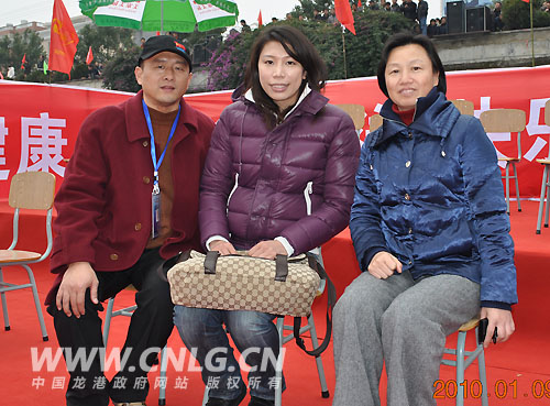 我镇冬泳协会理事(左)与世界游泳冠军齐辉(中),福鼎市人民政府副市长陈梅(右)