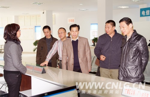 据了解,龙港行政审批中心于本月11号开始了试办公,26个职能部门进驻该中心,137项行政审批项目可以直接办理。整个中心共有两层楼,大厅采用敞开式办公,并设居民休息区。检查中,王忠秀一行详细了解了各窗口单位人员的工作情况,并对相关单位入驻事宜做了了解。王忠秀指出,县政府成立龙港行政审批中心,出发点就是为了方便广大群众和企业办事,解决企业和群众办事难问题。他要求要认真总结试办公以来的工作经验,为下一步更好的工作打下基础。同时,他还要求有关部门要做好行政审批中心周边的交通秩序、环境卫生等涉及民生的工作。