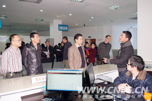 本网讯:1月19日下午,龙港行政审批中心于20号上午正式挂牌成立,19号下午,王忠秀、项延宝、金珍敏等领导来到龙港行政审批中心,详细了解该中心的成立筹备情况,并对存在的问题进行了协调解决。