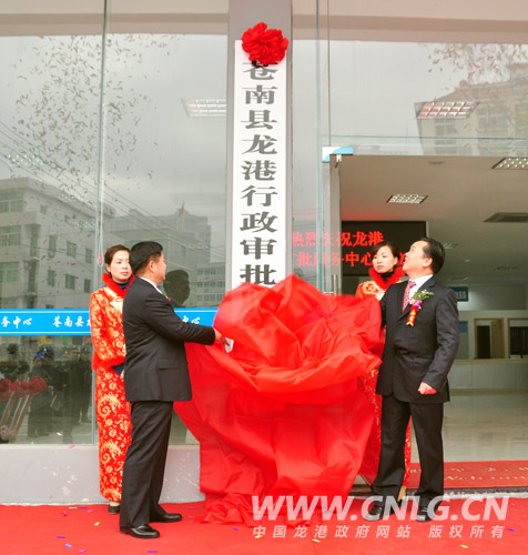 县委书记章方璋、县人大主任苏庆明为龙港行政审批中心揭牌