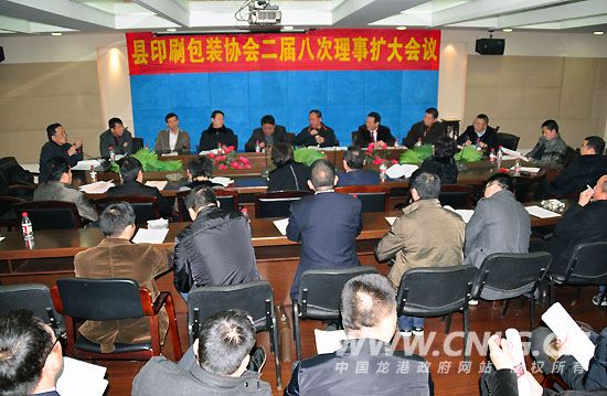 本网讯:1月22日,苍南县印刷包装协会二届八次理事会议在曙光集团会议室隆重召开。会议总结2009年协会工作,审议2009年财务报告,讨论苍南县印刷包装协会三届理事会候选名单,讨论赴境外参展的问题,部署2010年协会工作。会议由县工商联副主席、龙港商会会长倪法川主持,秘书长陈后强作2009年协会工作总结,会长朱诗力作部署2010年协会工作。常务副会长、副会长、理事等50余人参加了会议,县经济贸易局副局长蔡可评,县民政局副局长金余成莅临会议指导。