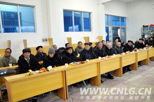 图为龙港片县离退休老干部新春团拜会在龙港老年大学召开