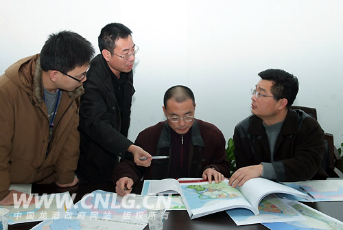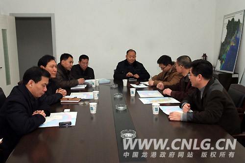 汤宝林在听取苍南临港产业基地指挥部规划处对港口驳位规划汇报