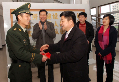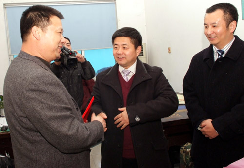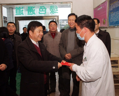 本网2月14日讯:大年初一下午,有苏庆明、林万乐、章月影、尤有光等县领导带队的新春慰问团一行来我镇,亲切地看望并慰问了坚守岗位的一线职工,给他们致以节日的问候。龙港镇人大主席上官光强及县镇工会等部门负责人陪同慰问。
