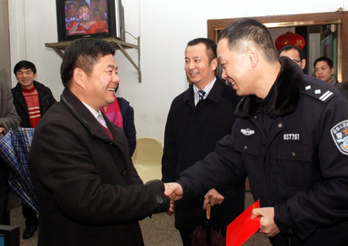 新春慰问团一行首先来到龙港公安分局,亲切地看望了正在值班的民警,并与他们一一握手,详细了解目前龙港每天出警、巡逻和社会治安等方面情况,对公安干警为我镇经济社会发展提供了安全稳定的社会环境给予了充分肯定。随后,新春慰问团一行还来到医院、供电、环卫、消防、水厂、交警等部门,亲切地看望了坚守在一线的广大职工,对他们的辛勤劳动,并在节日期间仍然坚守岗位、默默奉献的精神,表示十分感谢,向大家拜早年,并致以节日的问候,祝福大家新春快乐,虎年吉祥。