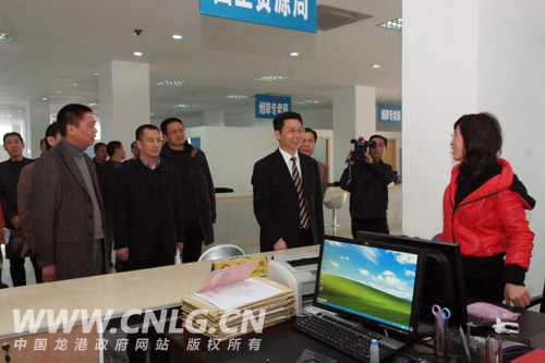 县委副书记林晓峰与进驻该中心的部门工作人员交谈详细了解该中心目前办公运行情况