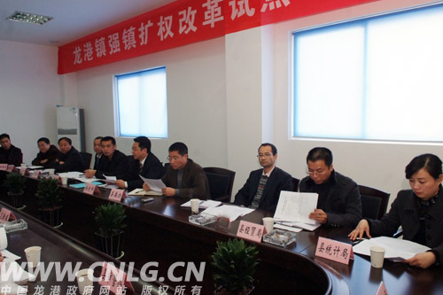同时,林晓峰还对“强镇扩权”试点工作提出要求,并指出,龙港镇及相关部门一定要高度重视“强镇扩权”试点工作的重要性,要把“强镇扩权”试点工作作为龙港全局性的一项重点工作来抓,要做到真心实意,真抓实干,实现“强镇扩权”试点工作实际性与突破性发展,要加大超前谋划和科学规划的力度,特别是龙港中心区的规划与建设,必须做到高起点、高标准,十二五规划也要充分考虑龙港重大项目建设,尤其是产业的转型与升级,眼光要远,目标要高,要按照龙港城市建设规划要求来建设与发展。同时,还要加大对龙港的用地、财政、人事管理、工作平台建设等方面的支持力度,并且要加强考核督查,加强信息反馈,对“强镇扩权”试点工作,真正要做到专题研究、专人负责、专人管理,切实落实“强镇扩权”试点工作责任。