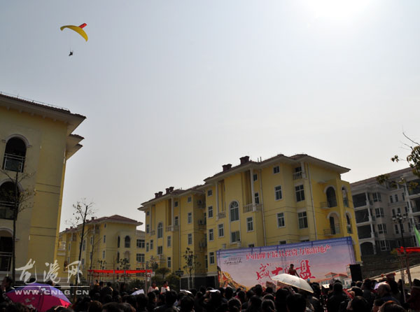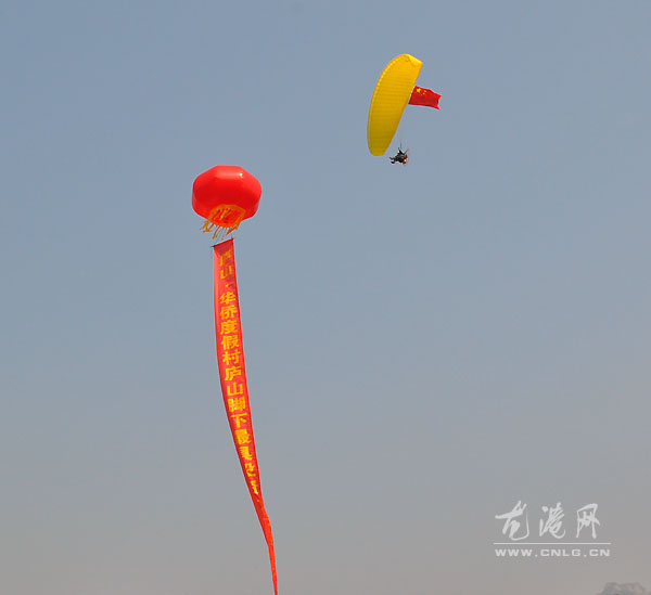 本网独家报道:(施世雁 上官福存)2月21日,由龙港网组织龙港网民购房团一行30人走进江西庐山,参加当地华侨度假村旅游地产开盘仪式,中国航空协会会员、中国注册动力伞飞行员、我镇网民陈斌驾驶动力飞行伞来购房,受到星子县领导关注,全场200余人以热烈掌声欢迎他架机来购房。