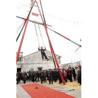 荡秋千,是我国传统的娱乐项目,历史十分悠久。古时的秋千多用树桠枝为架,再拴上彩带做成,后来逐步发展为用两根绳索加上踏板的秋千。“秋千者,千秋也。汉武祈千秋之寿,故后宫多秋千之乐”。唐代高无际《汉武帝后庭秋千赋》中的这段记述可以证明,在汉代就有荡秋千健身体的活动项目。“高悬彩架接云天,共庆新年胜旧年;姊妹艳装争奇丽,倩郎抛索送秋千。”这首清代《盐源竹枝词》所描写的就是荡秋千迎新春的习俗。