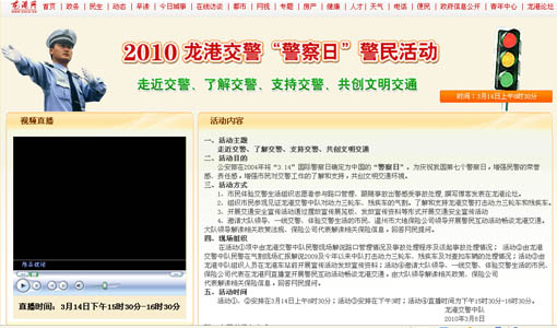 4、邀请大队领导、一线交警、体验交警生活的市民、温州市大地保险公司领导开展警民互动活动畅谈龙港交通。大队领导解读相关政策法规、保险公司代表解读相关保险信息,回答网民提问。