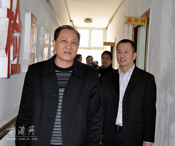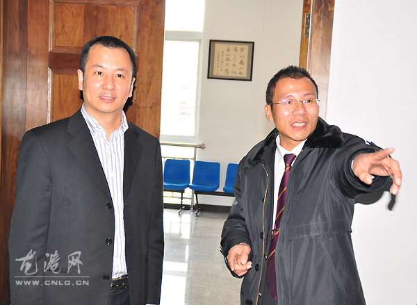 县委常委、统战部部长、龙港镇委书记林万乐(右)视察龙港试验区检察院