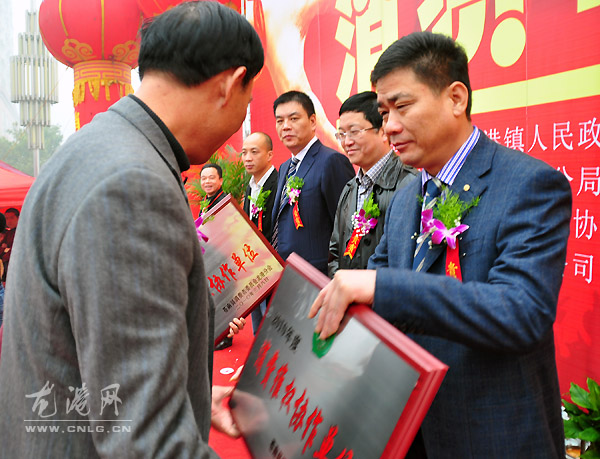镇人大主席上官光强为消费维权协作单位颁发牌扁