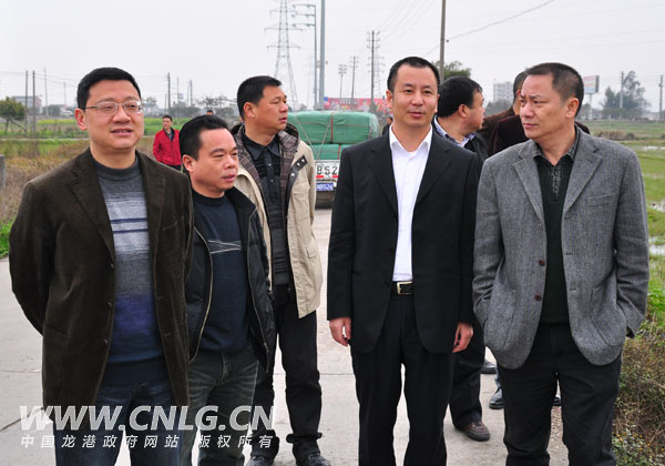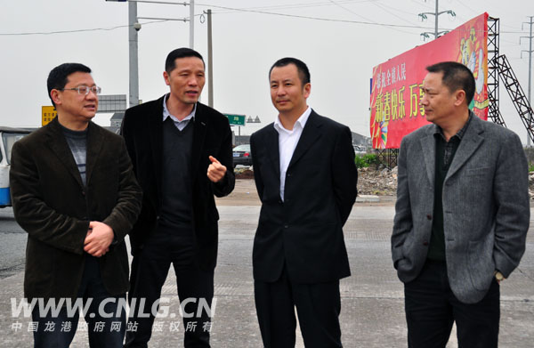 林万乐丁振俊调研我镇第三产业工作,图为在视察龙港休闲文化娱乐广场项目地块