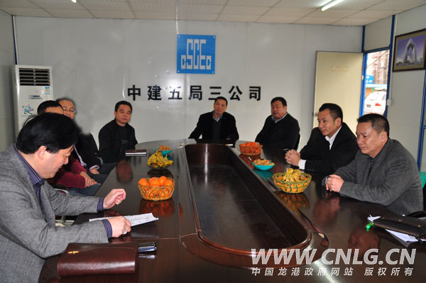 林万乐丁振俊调研我镇第三产业工作,图为在视察龙港诚大饭店建设工地