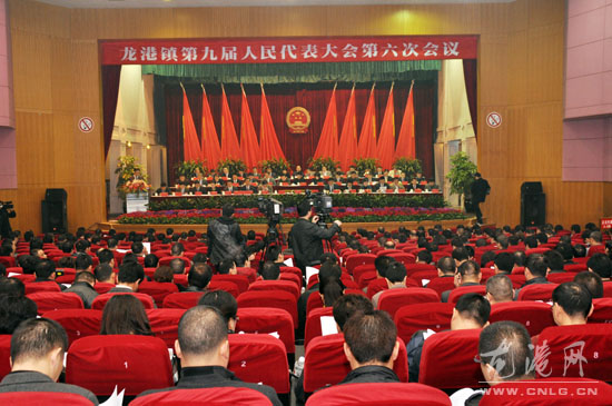 本网讯:今天上午,龙港镇第九届人民代表大会第六次会议在龙港影剧院隆重召开,大会审议并通过了镇长王忠秀代表镇政府所作的《政府工作报告》、副镇长方崇亮作的《2009年度政府预算执行情况和2010年政府收支预算报告》以及镇人大主席上官光强作的《镇人大主席团工作报告》。