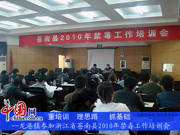 本网讯:为贯彻落实《禁毒法》,全面推进我镇禁毒工作,进一步提升禁毒专职人员的业务水平,4月1日龙港镇禁毒办主任尤良忠带领全镇禁毒专职人员和全体社工共四十多人参加苍南县2010年禁毒工作培训会。