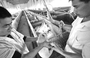 本网讯:昨天下午,在苍南县龙港村余北村生猪养殖公司,龙港畜禽防检站工作人员为乳猪注射猪瘟、口蹄疫防疫针。时下是禽流感等动物疫病的高发季节,苍南畜牧兽医局组织专业技术人员深入养殖场户,对填栏补笼畜禽开展禽流感、口蹄疫、猪瘟的防疫补针工作,确保疫苗注射免疫率100%。苏巧将