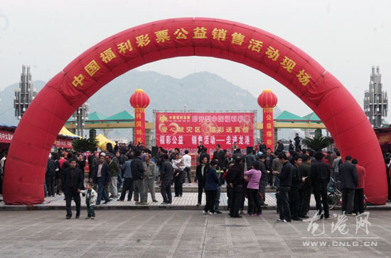 图为中国福利彩票送温暖暨公益销售活动在龙翔广场举行