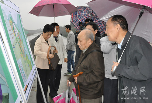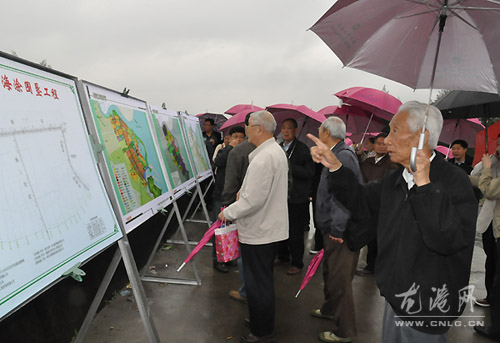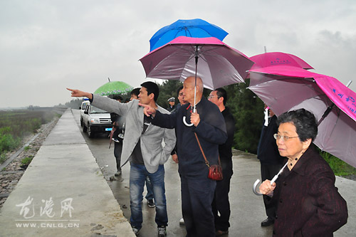 在大堤上,老干部们听取了苍南临港产业基地海涂围垦建设指挥部关于临港产业基地海涂围垦建设工作的汇报,老干部们实地察看了现场。老干部们对我镇的重点工程建设和现代化城市发展给予高度评价,充分肯定了近几年来我镇的经济社会发展工作。