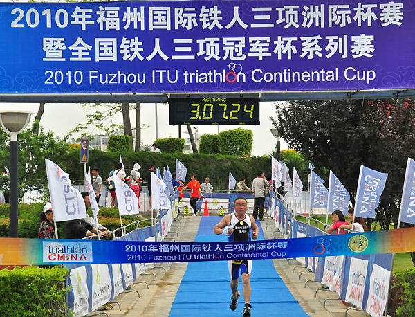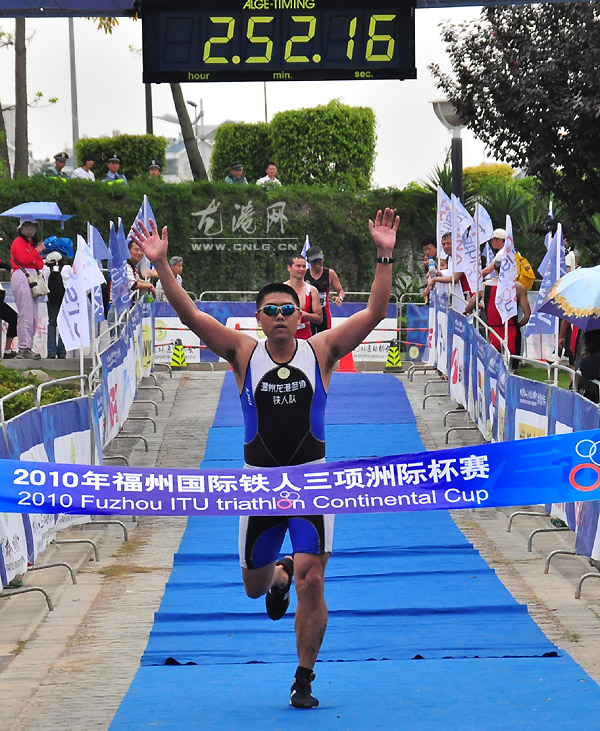 本网讯:(本网特约记者吴日姜 阿芳)5月16日,2010年福州国际铁人三项洲际杯赛暨全国铁人三项冠军杯系列赛在福州正式开赛,在16日的比赛中,我镇选手陈家俊获得水陆两项:20-40岁组第三名,高满叠获得铁人半程:40岁以上组第4名,潘凯骋获得铁人半程:20-40岁组第6名,王细求获得铁人半程20-40岁组:第7名,高旗获得铁人半程:40岁以上组第9名,林振和获得铁人半程:20-40岁组第9名,林万中获得铁人半程:40岁以上组第10名,王瑞表获得铁人三项全程45-49岁组第11名,陈国栋获得铁人三项全程35-39岁组第15名,温积勇获得铁人三项全程40-44岁第18名,谢伟在跑步时旧伤发作,在规定时间内用坚持完成了铁人三项全程。