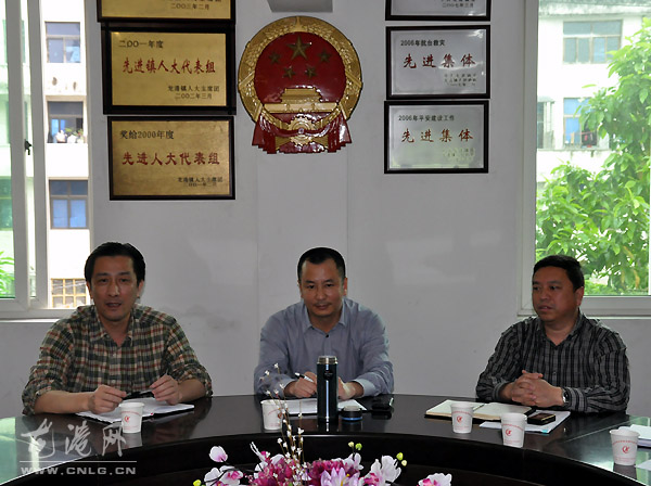 县委常委、统战部长、龙港镇委书记林万乐(中)镇委副书记缪克钊(左),副镇长吕存阳(右)