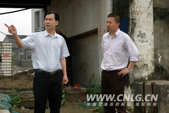 本网讯:连续几天的降雨,使我镇防汛形势比较严峻。5月21日上午,镇长王忠秀再次对我镇部分重点防汛设施和防汛准备工作进行了检查。副镇长李斯钢陪同调研。