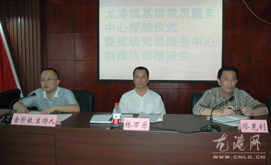 本网讯:5月27日上午,我镇举行向13个基层党员服务中心授牌的仪式,在仪式上,我镇还专门召开了星级党员服务中心创建活动推进会。县委常委、统战部长、龙港镇委书记林万乐、镇委副书记缪克钊、宣传委员金珍敏出席了会议。