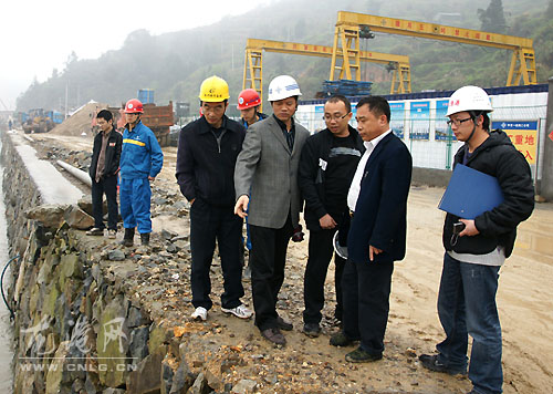 吴正林一到石砰乡就前往石砰渔港实地察看渔港建设和工程的进展情况,并到施工队办公室听取工作汇报。