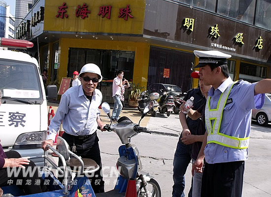 图为龙港论坛网友志愿者协助交警维持交通秩序