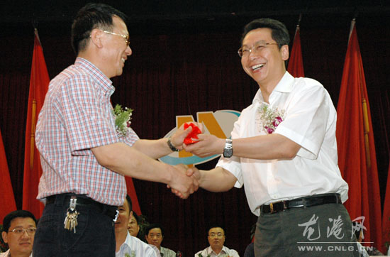 县委副书记林晓峰在会上也对新一届工商联和商会工作进行勉励,他希望新成立的工商联和商会班子要在引导企业坚持自主创新、转变增长方式、加快结构调整、实现产业升级方面继续努力,为苍南和龙港的经济建设做出最大的贡献。