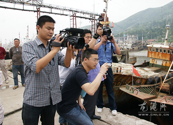 采访团一到舥艚镇就参观了摆放在镇政府大院内的渔业安全生产宣传图片,随后召开渔业安全管理汇报会,苍南县海洋与渔业局局长吴正林、舥艚镇镇长陈显宏分别介绍了苍南县和舥艚镇渔业安全管理的情况并接受了采访。浙江电视台记者提问:“渔民素质培训任重道远”?吴正林局长妙答记者提问,“渔民的综合素质和安全意识较低,尤其是外来雇工从事渔业生产,安全意识和作业技能不足,每年将要花一定的时间加强培训,渔民素质培训任重道远。”随后采访团还到舥艚渔港现场采访渔民和渔业企业。