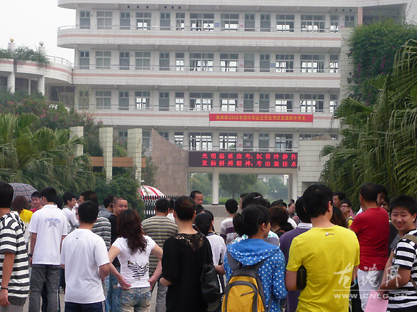 在龙港第一中学门口,张先生送自己的孩子走进考场,然后再叮嘱几句话。张先生接受本网记者采访时说:“按照孩子的平时成绩,考个龙高没有问题。我们也不给他压力,能考多少分算多少。”