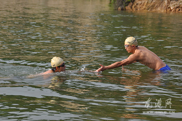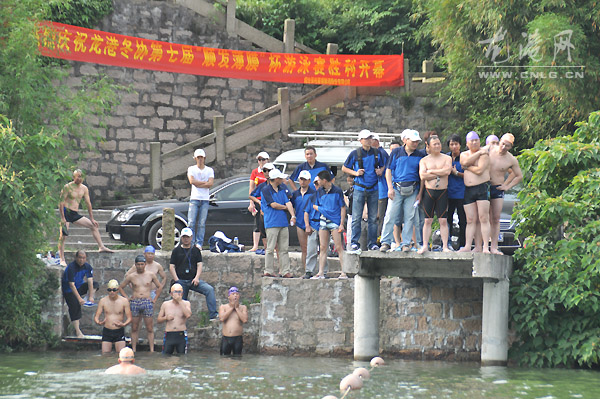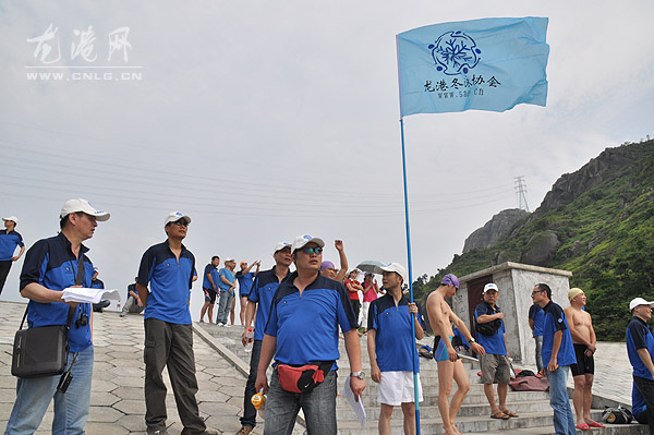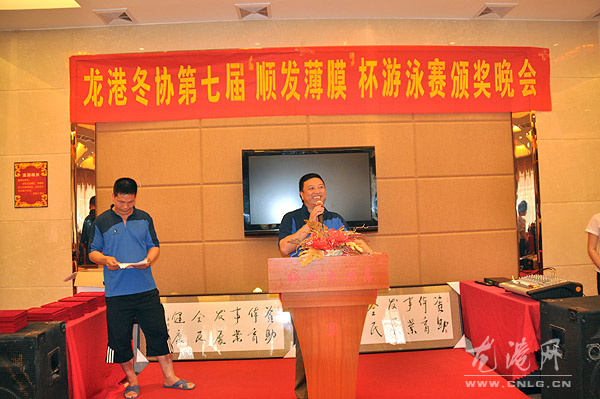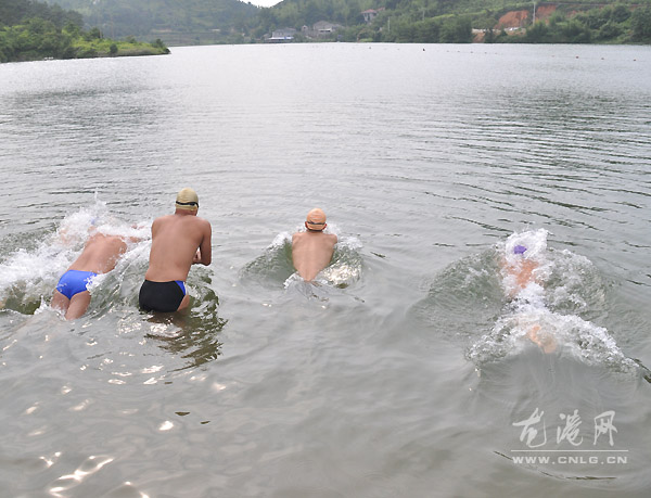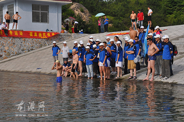 本网讯:6月12日,由龙港镇体育联合会、龙港镇冬泳协会主办,龙港网协办,温州市顺发薄膜贸易有限公司冠名的第七届端午节“顺发薄膜杯”游泳赛在塘川水库游泳基地举办,来自我镇五支冬泳队50名队员参加10X350米自由泳接力赛。镇领导吕存阳宣布开赛。