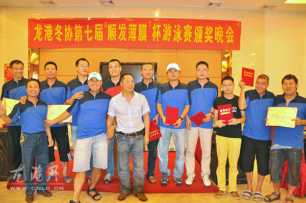 通过一个多小时的紧张角逐和各队员的积极配合下,龙港冬泳二队获得第一名。
