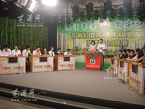 本网讯:为了进一步宣传贯彻《中华人民共和国禁毒法》,普及娱乐场所从业人员对毒品的认识,提高娱乐场所从业人员对识毒、防毒、拒毒能力。2010年6月18日,苍南县举办了全县娱乐场所从业人员禁毒知识竞赛,我镇有三支队伍参加了比赛。