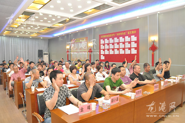 图为县府办副主任吴为民,县工商局局长厉达森,龙港镇副镇长方崇亮,龙港工商分局局长朱贵程,浙江省礼品行业协会会长应仲树,龙港工商联主席倪法川,仪邦集团党委书记陈如奏,浙江省礼品行业协会副会长陈加枢在主席台第一排就座。