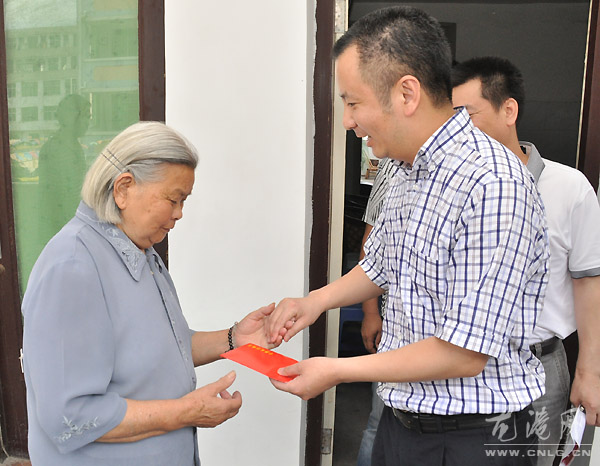 本网讯:6月28日,县委常委、统战部部长、龙港镇委书记林万乐,龙港镇长王忠秀(副县长级)在镇委委员金珍敏,镇委委员、人武部长黄传朴,镇委委员戴安胡,镇委委员、公安分局局长张立吕,副镇长吕存阳陪同下带领相关人员来到湖前、江山、白沙、海城办事处慰问新中国成立前老党员和困难党员,在“七一”到来前夕,为他们送去党和政府的深切关怀和美好祝愿。