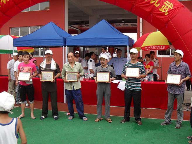 经过角逐,湖前办事处永安义务消防队获得了比武第一名,薛家桥义务消防队、岑浦义务消防队获得第二名,黄中义务消防队、方中义务消防队、民主义务消防队获得第三名。