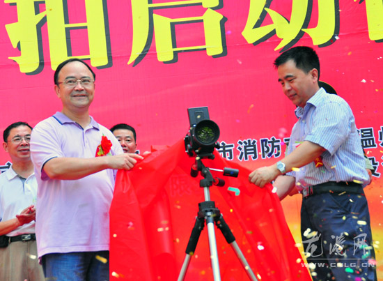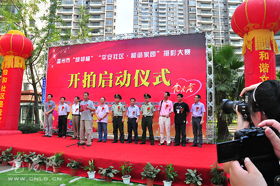 本网讯:7月11日消息:由温州市房产管理局、温州市公安局消防支队、温州市摄影家协会联合主办的温州市“绿邦杯”“平安社区·和谐家园”摄影大赛于7月10日在我县举行开拍启动仪式,来自全市近50名摄影爱好者参加,县人大常委会副主任王宗泽与温州日报编委、市摄影家协会主席朱宝钢为比赛开拍启动仪式揭幕。