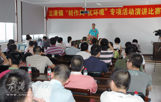本网讯:昨天下午,龙港镇举行“转作风优环境”主题演讲比赛,来自我镇机关单位的17名青年选手各展才智,献上了一场精彩纷呈的演讲。镇领导上官光强、项延宝、吕存阳观看了比赛。