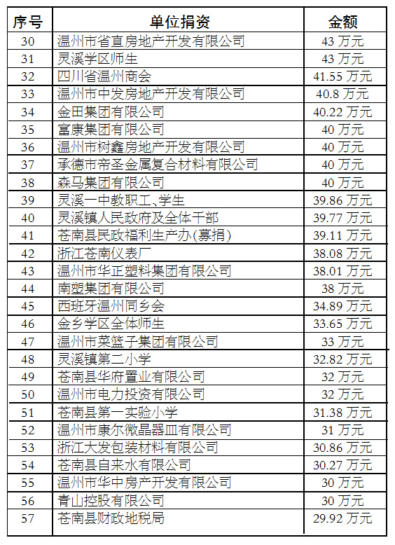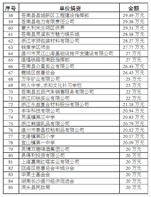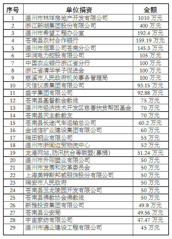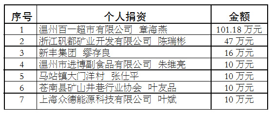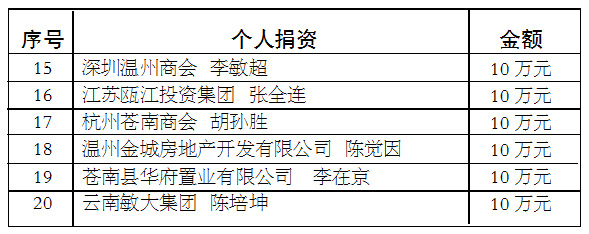 苍南县慈善功德碑廊上碑单位和个人公示