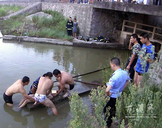 17时44分,消防官兵到达现场后,发现周围都是围观群众,河道里有几名群众正在水里利用竹竿不停的打捞,经实地察看和现场情况了解后,得知该河道水最深处3米左右,而且溺水小男孩已沉入水底,已经有很长时间了,生死未卜,具体位置也不明确。中队指挥员迅速组织3名会游泳的官兵下水联合群众进行搜寻打捞,由于具体位置不明确,又没有打捞工具,给搜寻打捞带来了一定的困难,消防官兵只能一次又一次潜入水中搜寻但都无功而返。