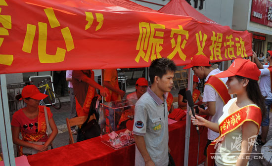 本网讯:特大山洪泥石流让甘肃舟曲同胞的生命财产遭受惨重损失。8月16日上午,龙港大学生村官志愿者自发组织为“甘肃舟曲灾区献爱心”倡议活动,在龙跃路与建新路路口开展现场募捐,并得到了龙港市民的踊跃支持。