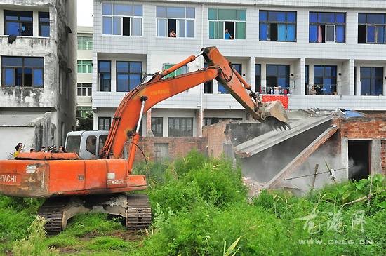 龙网讯:由于部分村民在工程用地上私自建房,新美洲扶贫小区二、三期工程迟迟未开始施工,为加快项目进场,昨天龙港镇政府组织有关部门对这些违章建筑进行了统一拆除。