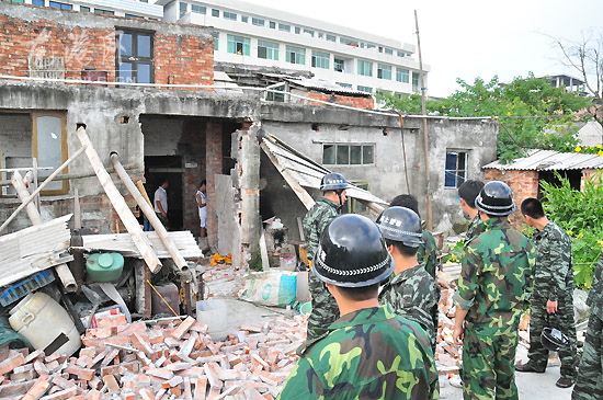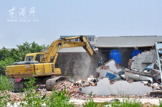 据现场指挥人员介绍,这些违章建筑的房主在未办理相关手续的情况下,就在规划红线以内私自搭建房屋,影响了扶贫小区的项目建设进度。规划部门在数月前就发出书面通知,责令房主限期自行拆除,但房主却置之不理,为此龙港镇政府组织人员依法对其作出强行拆除的决定。在此次拆违行动中,拆除民房4间、厂房11间,拆除违章面积4千多平方米。