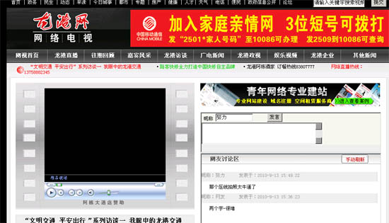 直播时间是:2010.9.15 嘉宾:龙网网友 龙网志愿者 龙港居民 主持:阿冰