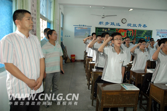 龙网9月17日讯:今年的9月18日,是“九一八”事变78周年纪念日。上午,我镇各中小学校学生举行宣誓活动,纪念中华民族蒙受耻辱的日子。镇委委员黄传朴参加纪念活动